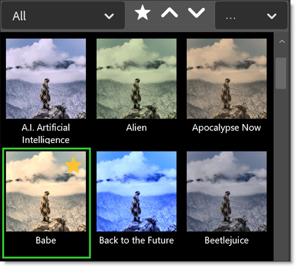 Presets tagged as a favorite display a yellow star at the top right of the preset.